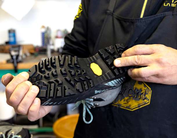 „E infine la giusta suola ridona alla scarpa la possibilità di tornare per sentieri, con precisione e flessibilità. Un buon lavoro, fatto di metodo e pazienza.“